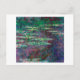 Oscar-Claude Monet (14 novembre 1840 - 5 décembre 1926) était un peintre français, un fondateur de la peinture impressionniste française et le praticien le plus constant et le plus prolifique de la philosophie du mouvement d'exprimer ses perceptions avant la nature, surtout en ce qui concerne la peinture en plein air paysage. Le terme "impressionnisme" est dérivé du titre de sa peinture Impression, soleil levant (Impression, Sunrise), exposée en 1874 dans la première des expositions indépendantes montées par Monet et ses associés comme alternative au Salon de Paris. L'ambition de Monet de documenter la campagne française l'a conduit à adopter une méthode de peinture de la même scène à plusieurs reprises afin de capturer le changement de lumière et le passage des saisons. À partir de 1883, Monet vit à Giverny, où il acquiert une maison et une propriété et entreprend un vaste projet paysager qui comprend des étangs de nénuphars qui deviendront les sujets de ses oeuvres les plus connues. Il commence à peindre les nénuphars en 1899, d'abord en vue verticale avec un pont japonais comme élément central, puis dans la série de peintures à grande échelle qui devait l'occuper continuellement pendant les 20 années suivantes de sa vie. Citation : Wikipedia