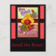 Style Art déco, cette illustration est tirée d'un étiquette vintage à la sorcière Hazel avec un cadre orné et des roses rouges.