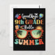 Tee faire-part de fin d'études Avec de jolies lunettes de soleil d'été et un texte super de citation design qui lisent, Au revoir 9e année Bonjour été, pour les femmes, les hommes, les filles et les garçons, profiter de vos vacances d'été avec une grande tenue. Vêtements parfaits pour enseignant de 9e année, étudiant, fils diplômé, fille, écolier, soeur, frère, neveu, nièce, ami... de belles vidéos de fin d'études de 9e année présentes pour la dernière journée d'école, le jour de remise des diplômes, vacances d'été...