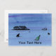 Une toute petite aquarelle en soirée et un paysage rose d'une épave navale, de requins, d'un survivant sur une île déserte, et le message en bouteille. Peint pour Art-O-Mat.
