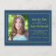 Carte postale personnalisée de diplômé "Enregistrez la date" en bleu marine et vert citron (couleur modifiable).