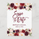 Script De Brosse Moderne, Aquarelle Burgundy Marsala Floral, Enregistrer La Carte Postale Fiançailles Date