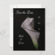 Elégant mariage calla lily enregistrer la date carte postale. Achetez ces belles cartes pour correspondre aux invitations de mariage. L'arrière - plan noir et le lis blanc est une superbe photographie de la vie morte de cette fleur. Faites savoir aux gens le jour où vous vous mariez.
