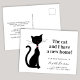 Moderne fun nouvelle maison / changement d'adresse carte postale mobile faire-part avec une jolie illustration d'un chic et élégant chat noir avec un col rose. Sur le devant, personnalisez avec votre nom dans un script élégant, le texte "chat et moi avons une nouvelle maison" et votre nouvelle adresse. Au contraire, personnalisez votre faire-part de façon plus détaillée et incluez un numéro de téléphone et un courriel si vous le désirez.