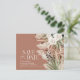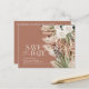 Carton d'invitation de mariage à la ferme rustique moderne avec fleurs botaniques bohèmes, herbe de pampas et eucalyptus. Élégant et chic, aquarelle florale dans des tons terracotta, vert sauge, crème naturel et noir. Espace au dos de cette invitation de mariage économique pour des informations et un code QR avec tous les détails de votre mariage.