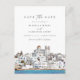 Cette carte de faire-part présente une peinture à l'aquarelle de la ligne d'horizon de Paros, en Grèce, et un dos simple pour un envoi postal facile. Ce faire-part est parfait pour votre mariage de destination inspiré de la Grèce ou votre événement à thème de voyage.