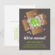 Si vous déplacez ces cartes postales de faire-part sont idéales à envoyer à vos amis et à votre famille pour les informer de votre nouvelle adresse. La conception de ces annonces comprend une boîte d'emballage avec popcorn d'emballage et une jolie maison assise à l'intérieur. C'est intelligent, moderne et contemporain. Les couleurs sont un gris neutre et une couleur verte.