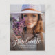Une carte postale élégante de faire-part de remise de diplômes présente votre photo, le mot diplômé, votre nom, l'année scolaire et de classe sur le devant et vos détails de faire-part sur le dos. Vous pouvez modifier le libellé au verso d'une invitation de faire-part à une invitation de remise de diplômes. CORRESPONDANCE d'objets dans notre collection.