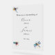 Ce panneau mariage enchanteur est joliment décoré avec des libellules colorées d'aquarelle, symbolisant l'amour, le changement et de nouveaux débuts. Délicatement peintes dans des tons chatoyants de bleu, violet, vert et jaune, les libellules flottent gracieusement à travers le design, créant une atmosphère fantaisiste et romantique. Les noms du couple sont présentés dans une élégante police romaine d’emeline et de garamond, assurant un look raffiné et accueillant. Ce signe mariage donne le ton parfait pour une célébration magique et inoubliable.