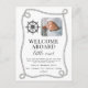 Cette mignonne faire-part de naissance à thème nautique comporte l'expression "Bienvenue à bord, petit !". Personnalisez-le avec une photo et tous les détails du bébé. Avec ses accents d’inspiration maritime, c’est une façon douce et élégante de partager l’arrivée de votre bébé avec vos amis et votre famille. Parfait pour les propriétaires de bateaux, les pépinières de bord de mer et tous ceux qui aiment le design inspiré de l'océan !