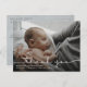 Carte postale moderne de faire-part de naissance de bébé. Conception avec écriture merci, une seule photo du bébé, statistiques de naissance, date et un nom sur le devant. Personnalisez avec une autre photo et votre message de remerciement au verso.