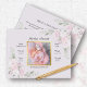 Une carte de charme pour annoncer la naissance d'un bébé. Le design est doux et doux floraux, avec un emplacement pour la photo des nouveaux arrivants. Des détails sont également disponibles, faisant de la carte un mème doux. Il y a assez de place à l'arrière pour écrire les détails supplémentaires.