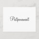 Carte postale moderne en noir et blanc mariage report faire-part avec un design simple avec le titre en script. L'arrière a vos détails et l'adresse de retour pour faciliter l'envoi. Un design simple et sobre qui se révèle tout de même élégant. Ces cartes postales minimalistes à faire-part sont une excellente façon de faire savoir aux clients que votre mariage a été reporté.