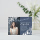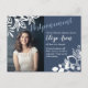 Des changements de date inattendus peuvent se produire. Envoyez à vos invités de compréhension une carte postale de report de date avec thème bleu-gris et blanc floral. Ces cartes de faire-part de report sont parfaites pour tous les Bat mitzvah, diplômes, Quinceanera, anniversaire d'ado, anniversaire, remise de diplômes ou célébration de mariages.