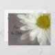 Donnez le ton pour votre prochaine cérémonie de mariage avec l'élégante Soft White Daisy sur Grey Wedding Save the Date Postcard Faire-part. Ce mariage botanique personnalisé et élégant garde les cartes postales datées avec une photo florale à exposition multiple d'une fleur marguerite blanche avec un centre jaune et arrière - plan gris.