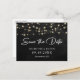 Mariage rustique personnalisé en tableau noir enregistrer les cartes postales datées avec un arrière - plan en tableau noir orné de lampes à cordes. Personnalisez facilement cette rustique enregistrer la carte postale de date avec vos détails mariages, y compris un site Web mariage, si désiré. Pour des demandes personnalisées, envoyez-nous un message.