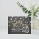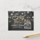 Mariage Enregistrer la date Carte Postale Modèles - Elégant Faux Gold Foil Enregistrer la date Lettering Script et Vintage Mason Jar String Lights avec Grunge Black Chalkboard Arrière - plan. Un design parfait pour votre grand jour. Tous les styles de texte, couleurs, tailles peuvent être modifiés selon vos besoins !