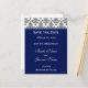 Carte Postale Faire-part Enregistrer la date - Noir & Blanc & Bleu foncé