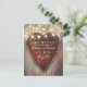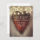 Faire part de carte postale de mariage en bois de grange et coeur sculpté avec guirlande lumineuse. Faire part de date de mariage idéal pour un mariage champêtre