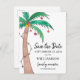 Cette carte postale de la famille Save the Date présente un palmier décoré d'aquarelle.