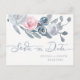 Carte Postale Faire-part fleurs bleues poussiéreuses enregistrer la date