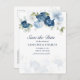 Élégante aquarelle florale bleu poussiéreux, blanc et marine bouquet de fleurs mariage enregistrer la date carte. La carte présente un script "Enregistrer la Date", qui peut être changé pour un type de police de votre choix qui sont disponibles ici lorsque vous cliquez sur le bouton "Personnaliser".