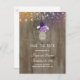 Bois rustique, lampes à cordes, et pot de mason violet fleuri enregistrer la date cartes postales