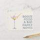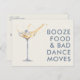 Faites de votre faire-part un moment inoubliable grâce à ce mariage unique et amusant, sauvez les cartes postales datées! Doté d'un design ludique en verre de champagne et d'une bague pétillante à l'intérieur, l'avant déclare avec audace "Booze, food, and bad dance move", parfait pour les couples qui aiment célébrer avec humour et style. Personnalisez ce design avec vos noms, date mariage et emplacement pour créer une date de sauvegarde qui apportera un sourire aux visages de vos invités. L'arrière comprend de l'espace pour votre adresse de retour et des détails supplémentaires sur le mariage, ce qui permet à chacun de marquer facilement son calendrier. Ces cartes postales allient plaisir et fonctionnalité - aucune enveloppe requise - offrant un moyen facile de partager vos nouvelles passionnantes. Que vous planifiez un mariage chic, décontracté ou amusant, ce design donne le ton parfait. Besoin d'aide pour customiser ou avoir une demande spéciale? Cliquez sur le bouton de contact ci-dessous, et je vous aiderai à créer une date d’enregistrement aussi unique que votre histoire d’amour!"**