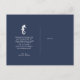 Cette élégante suite de mariage présente un style nautique classique avec un look épuré et minimaliste. Des vagues stylisées dans des nuances d'aqua à bleu marine et une magnifique illustration de hippocampe apportent des accents uniques. Cette carte de remerciement de mariage présente un petit hippocampe blanc sur fond bleu marine, ainsi qu'un modèle pour ajouter votre message personnel de 'merci', vos noms et la date du mariage. Parfait pour les mariages dans un club de yacht, en bateau, au bord de la plage ou en destination d'été. Recherchez ID836 pour voir cette suite complète et d'autres qui offrent des accents d'éléments marins alternés.