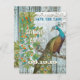 Rustic Luxe Aqua et Brown Peacock Mariages Shabby Country Grange Wood Texture Arrière - plan Avec notes musicales Peacock Invitations