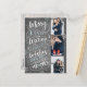 Cette carte postale moderne et chic de vacances sert aussi de carte d'enregistrement pour le couple nouvellement engagé. L'avant présente 3 de vos photos accentuées par des flocons de neige dessinés à la main et une typographie lettrée à la main qui dit "Joyeux baisers et voeux chauds de vacances du Bientôt être M et Mme" sur un arrière - plan de tableau de bord. L'arrière comprend une photo complète avec une superposition blanche transparente avec votre enregistrement des détails de date, adresse et message personnalisé.