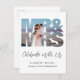 Un hébergement simple et chic, une carte postale mariage plus petite et une réception post mariage ou une invitation à la fête. L'avant présente votre photo dans un cadre découpé "Mr & Mrs", "Celebrate With Us" en écriture élégante et vos prénoms, date mariage et emplacement dans une simple typographie moderne. Au contraire, vous pouvez personnaliser votre mariage ou votre faire-part d'elopement de manière plus détaillée, ajouter une invitation à la réception ou à la fête et signer vos noms mariés dans un script signature. Si vous avez besoin d'aide pour recadrer votre photo afin que vos visages s'intègrent bien dans le cadre Mr & Mrs, n'hésitez pas à nous contacter à l'adresse juliehortondesigns@gmail.com