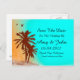 Belle carte postale de mariage à la plage avec palmiers océan bleu enregistrer la date. Entièrement personnalisable, cliquez sur le bouton Personnaliser pour changer la couleur, la taille et le style de police. Vous pouvez également supprimer, réorganiser ou ajouter plus de texte pour répondre à vos besoins.