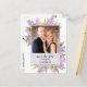 Cette belle carte postale est conçue pour donner à vos amis et à votre famille une idée de votre prochaine date de mariage. Le design présente votre photo dans un cadre lavande pâle violet entouré d'une abondance de fleurs lilas peintes à la main avec dentelle calligraphie script lecture enregistrer la date. Le dos avait un joli graphisme "crayons-nous dedans" avec de l'espace pour une note qui peut inclure un site Web pour donner à vos invités plus d'informations.
