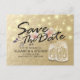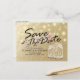 Cartes postales de mariage Enregistrer la date Modèles - Élégant modèle Floral Enregistrer la date Lettre et Vintage Jar en brique Lumières de corde sur fond de feuille d'or Faux.