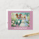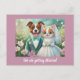 L'IA mignonne a généré l'image d'un chat et d'un chien comme un couple mariage dans une belle prairie fleurie avec les mots Nous sommes mariés. Vous pouvez facilement personnaliser cette carte postale avec votre propre texte et aussi si vous voulez avec votre propre image et vous pouvez changer la couleur arrière - plan en modifiant le produit.