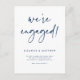 Nous sommes fiancés ! Annoncez votre fiançailles à votre famille et à vos amis avec cette carte postale personnalisable de fiançailles photo faire-part. Il comprend la calligraphie moderne et la typographie simple. Cette carte postale fiançailles bleu marine est disponible en d'autres couleurs. Personnalisez en ajoutant vos photos, noms et autres détails.