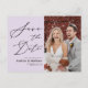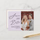 Carte postale d'annonce de mariage élégante, moderne et minimaliste avec photo et écriture élégante Mauve Violet Enregistrer La Date. Faites savoir à votre famille, vos amis et vos collègues que vous avez fixé une date pour votre célébration de mariage avec cette carte d'invitation de mariage élégante, stylée et moderne. Tous les textes sont pré-arrangés pour que vous puissiez les personnaliser facilement et rapidement avec vos propres détails.