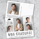 Carte de faire-part minimal moderne MBA masters graduation avec un collage photo de 4 images, "MBA Graduate" écrit en bas en lettres capitales et son année de classe, nom et école ou université en simple typographie. Au verso, ajoutez une photo supplémentaire et un message personnalisé.