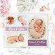Moderne, Girly Lilac et Mauve Merci Baby Faire-part de naissance 4 Photo Collage Cartes postales. Elégant, mignon faire-part de naissance photo avec quatre (4) de vos photos préférées avec un joli script en blanc sur lilas pastel ou violet clair et mauve ou des blocs de couleur pourpre prune poussiéreuse. Ajoutez le nom de votre bébé, le message de remerciement et les statistiques de naissance. Facile à personnaliser.
