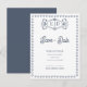 Navy Blue Crest Save the Date Card | Elegant Monogram Formal Wedding Announcement with Solid Back .