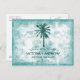 Ces cartes postales de date sont parfaites pour tout couple qui planifie une célébration romantique de mariage sur la plage. Le design présente un palmier vert turquoise tropical sur un arrière - plan à effet texturé turquoise et blanc avec un libellé modifiable coordonné en couleur. Le design simple peut être personnalisé pour convenir à votre événement spécial et sera le faire-part parfait pour toute soirée tropicale à thème, y compris : douches nuptiales, fiançailles, wedding showers, fêtes d'anniversaire et bien plus encore.