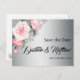 Un glamour argent et rose floral sauvegarder la carte date, ce design dispose d'un joli bouquet rose en rose dans le coin supérieur, avec un luxueux et élégant arrière - plan métallique argenté en dessous. Tous les détails peuvent être facilement changés en cliquant sur Personnaliser ce Modèle (ci-dessus).