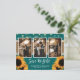 Mariage champêtre turquoise personnalisé enregistrer la date photo cartes postales avec 3 cadres photo avec burlap et dentelle, lumières à cordes et tournesol fleurs sur un arrière - plan burlap turquoise. Parfait enregistrer les cartes postales datées pour votre pays rustique turquoise, ou la fête de mariage de grange inspirée des tournesols.
