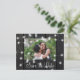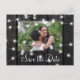 Rustic country photo wedding save the date postcard with glowing strings of white twinkle lights on dark brown barn wood. +++++++++ Easy to personalize with your picture, names, and text! ++++++++++ Suitable for evening lights, farmhouse, woodland destination, or barn wedding celebrations.