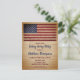 Cartes d'invitation pour une fête d'adieu de soldat avec drapeau américain rustique. Ces invitations avec drapeau américain rustique sont parfaites pour une fête d'adieu de soldat, un départ pour déploiement militaire, une célébration de retour à la maison d'un militaire, une remise de diplôme militaire et une retraite militaire. Personnalisez cette invitation avec drapeau américain avec l'événement de votre soldat, son nom et les détails de la fête.
