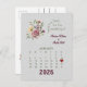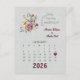 Pour le mariage informel, envoyez votre Save the Dates sur ces jolies cartes postales et oubliez de faire correspondre avec tous les détails. Une image de couleur solide avec un design floral dans le coin, un calendrier pour le mois du mariage avec un coeur rouge au-dessus de la date du mariage. Pour les mariages dans les années à venir il suffit de remplacer le calendrier par l'année de choix. Le texte courbe mignon dans les couleurs de coordination finit par l'avant. Le dos est un petit message d'invitation avec une signature de la mariée et du marié. À l'exception de décembre, qui est un calendrier original 2025, les autres mois sont les dates originales du calendrier 2026.