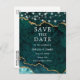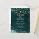 Carte Postale Faire-part Teal Gold Marble Agate Geode Lumières Enregistrer
