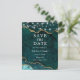 Moderne Élégant Aquarelle Teal et Or Marbre Agate Geode Enregistrer La Date Carte Postale avec Guirlandes Lumineuses