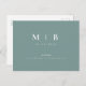 Carte Postale Faire-part Teal Simple & Élégant Monogramme Teal Save the Dat